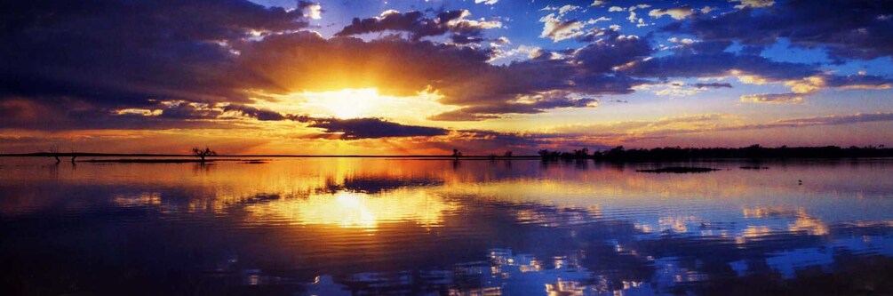High Resolution Landscape Beautiful Sunset Mirror Sky and Island on The Ocean Surface Background Wallpaper